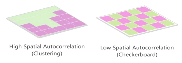 Singapore Management University ### 2020-5-1 (updated: 2021-06-06) --- # Content .large[ - The concept of spatial autocorrelation and how it help us to understand real world phenomena - Defining spatial Neighbourhoods and Weights - Contiguity-Based Spatial Weights - Rook's - Queen's - Distance-Band Spatial Weights - Applications of Spatial Weights ] --- ## What is geographically referenced attribute? .large[ A kind of data that is very similar to an ordinary data. The only difference is that each observation is associated with some form of geography such as numbers of aged population by planning zone. ``` ## Rows: 323 ## Columns: 12 ## $ SUBZONE_N <chr> "MARINA SOUTH", "PEARL'S HILL", "BOAT QUAY", "HENDERS~ ## $ SUBZONE_C <fct> MSSZ01, OTSZ01, SRSZ03, BMSZ08, BMSZ03, BMSZ07, BMSZ0~ ## $ PLN_AREA_N <fct> MARINA SOUTH, OUTRAM, SINGAPORE RIVER, BUKIT MERAH, B~ ## $ PLN_AREA_C <fct> MS, OT, SR, BM, BM, BM, BM, SR, QT, QT, QT, BM, ME, R~ ## $ REGION_N <fct> CENTRAL REGION, CENTRAL REGION, CENTRAL REGION, CENTR~ ## $ REGION_C <fct> CR, CR, CR, CR, CR, CR, CR, CR, CR, CR, CR, CR, CR, C~ *## $ YOUNG <dbl> NA, 1100, 0, 2620, 2840, 2910, 2850, 0, 1120, 30, NA,~ *## $ `ECONOMY ACTIVE` <dbl> NA, 3420, 50, 7500, 6260, 7560, 8340, 50, 2750, 210, ~ *## $ AGED <dbl> NA, 2110, 20, 3260, 1630, 3310, 3590, 10, 560, 50, NA~ *## $ TOTAL <dbl> NA, 6630, 70, 13380, 10730, 13780, 14780, 60, 4430, 2~ *## $ DEPENDENCY <dbl> NA, 0.9385965, 0.4000000, 0.7840000, 0.7140575, 0.822~ ## $ geometry <MULTIPOLYGON [m]> MULTIPOLYGON (((31495.56 30..., MULTIPOL~ ``` ] --- ## Describing attribute distribution The dependency ratio values by planning subzone are normally distributed. .center[ <img src="Topic06-Spatial_Weights_files/figure-html/unnamed-chunk-2-1.png" width="576" /> ] --- ## Geographical distribution question .large[ Are the planning subzones with high proportion of dependency ratio randomly distributed over space?] .center[ <img src="Topic06-Spatial_Weights_files/figure-html/unnamed-chunk-3-1.png" width="1080" /> ] --- ## Geographical distribution question .large[ Are the planning subzones with high proportion of dependency ratio randomly distributed over space?] .center[ <img src="Topic06-Spatial_Weights_files/figure-html/unnamed-chunk-4-1.png" width="1080" /> ] --- # Tobler’s First law of Geography .center[ ## Everything is related to everything else,<br/> but near things are more related than distant things. ]. .pull-left[ .large[ The foundation of the fundamental concepts of: - spatial dependence, and - spatial autocorrelation ]] .pull-right[ ] .small[[Reference: A Computer Movie Simulating Urban Growth in the Detroit Region](http://www.geog.ucsb.edu/~tobler/publications/pdf_docs/A-Computer-Movie.pdf) ] --- ## Spatial Dependency .pull-left[ .large[ - Spatial dependence is the spatial relationship of variable values (for themes defined over space, such as rainfall) or locations (for themes defined as objects, such as cities). - Spatial dependence is measured as the existence of statistical dependence in a collection of random variables, each of which is associated with a different geographical location. ]] .pull-right[ ] --- ## Spatial Autocorrelation .large[ - Spatial autocorrelation is the term used to describe the presence of systematic spatial variation in a variable. - The variable can assume values either: - at any point on a continuous surface (such as land use type or annual precipitation levels in a region); - at a set of fixed sites located within a region (such as prices at a set of retail outlets); or - across a set of areas that subdivide a region (such as the count or proportion of households with two or more cars in a set of Census tracts that divide an urban region).] .center[ ] --- ## Positive Spatial Autocorrelation .pull-left[ .large[ - Clustering - like values tend to be in similar locations. - Neighbours are similar - more alike than they would be under spatial randomness. - Compatible with diffusion - but not necessary caused by diffusion. ]] .pull-right[ ] --- ## Negative Spatial Autocorrelation .pull-left[ .large[ - Checkerboard patterns - “opposite” of clustering - Neighbours are dissimilar - more dissimilar than they would be under spatial randomness - Compatible to competition - but not necessary competition ]] .pull-right[ ] --- # What are Spatial Weights *(wij)* .large[ - A way to define spatial neighbourhood.] .center[ ] --- ## Defining Spatial Weight Matrices .center[ ] --- ## Contiguity Neighbours .large[ - Contiguity (common boundary) - What is a “shared” boundary?] .center[ ] --- ### Beyond the basic contiguity neighbours .large[ There are also second-order, third-order, forth-order, etc contiguity] .center[ ] --- ## Weights matrix: Adjacency-based neighbours .large[ **Quiz**: With reference to the figure below, list down the neighbour(s) of area 1202 using Rook case] .center[ ] --- ## Weights Matrix: Distance-based neighbours .large[ **Quiz:** With reference to the figure below, create a weights matrix for d = 650. ] .center[ ] --- ## Weights matrix: Measured distances .center[ ] --- ## Row standardisation .large[ - Row-standardised weights increase the influence of links from observations with few neighbours, which binary weights vary the influence of observations. - Those with many neighbours are up-weighted compared to those with few.] .center[ ] --- ## Spatially Lagged Variables .large[ With a neighbor structure defined by the non-zero elements of the spatial weights matrix W, a **spatially lagged variable** is a weighted sum or a weighted average of the neighboring values for that variable. In most commonly used notation, the spatial lag of y is then expressed as Wy. Formally, for observation i, the spatial lag of yi, referred to as [Wy]i (the variable Wy observed for location i) is:] .center[ ] .large[where the weights wij consist of the elements of the i-th row of the matrix W, matched up with the corresponding elements of the vector y. ] --- ### Applicatio
